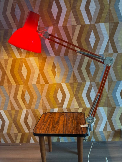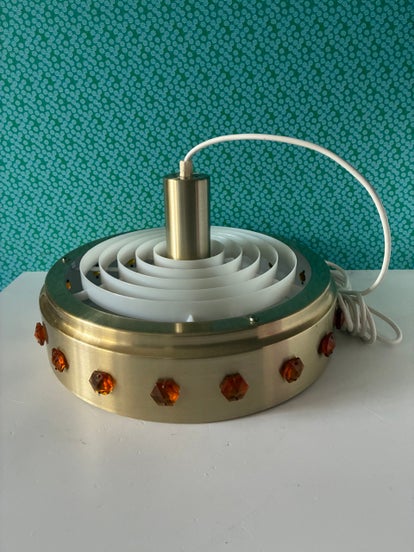 -arm is van metaal en heeft gebruiksschade, kap is van plastic en is in uitstekende conditie